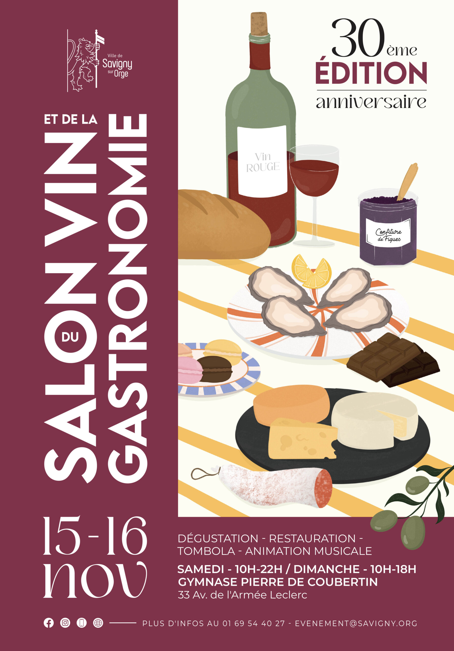 GYMNASE PIERRE COUBERTIN - 33 AV DE L'ARMEE DE L'AIR 91600 SAVIGNY SUR ORGE 33 AV. DE L'ARMEE LECLERC, SAVIGNY SUR ORGE, FranceLe réputé salon du vin et de la gastronomie de Savigny-Sur-Orge revient pour sa 30ème édition LES 15 ET 16 NOVEMBRE ! Au programme : atelier, démonstration de sucre étiré et de danses folkloriques, dégustations en tout genre, espace restauration, tombola et nocturne animé par la Banda Paname. Un week-end idéal pour les gourmands et […]